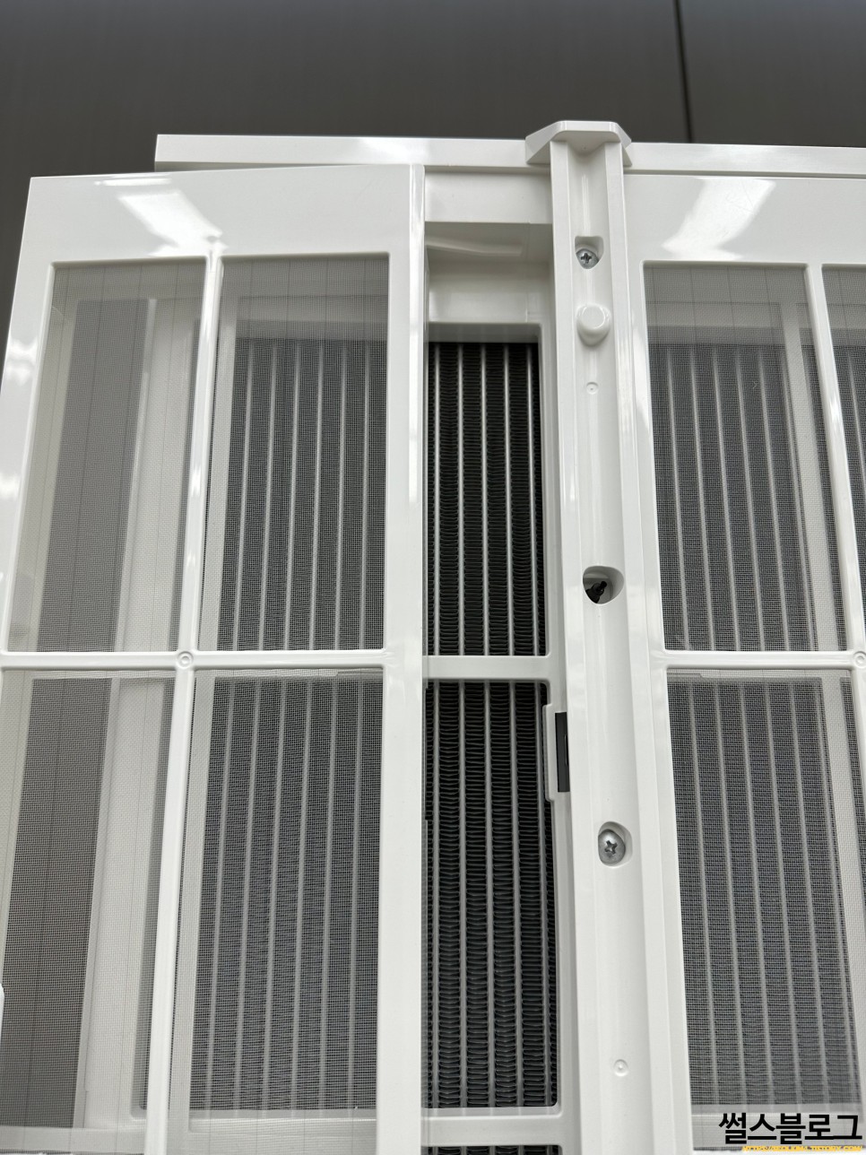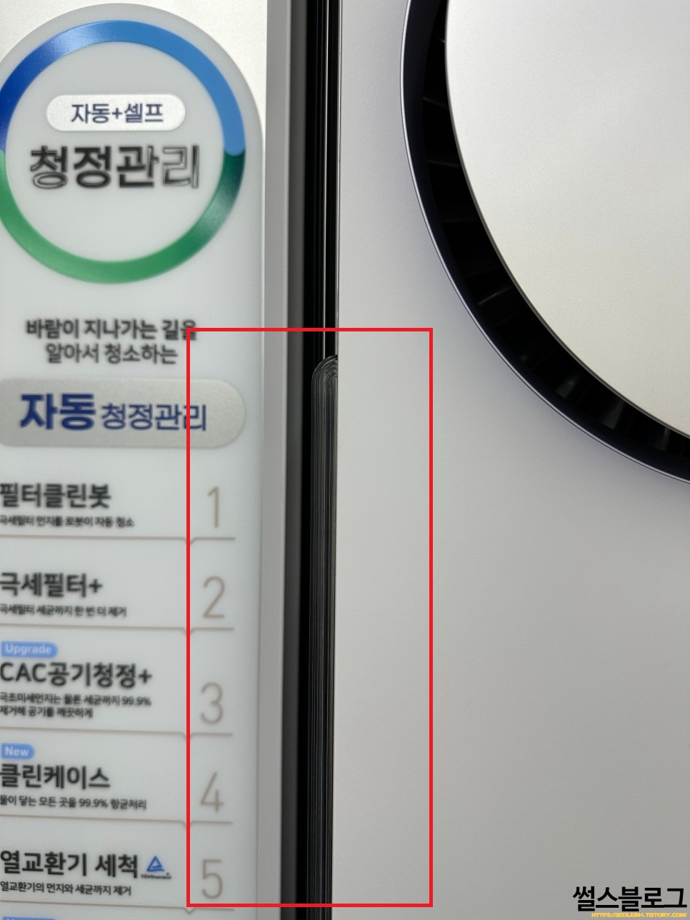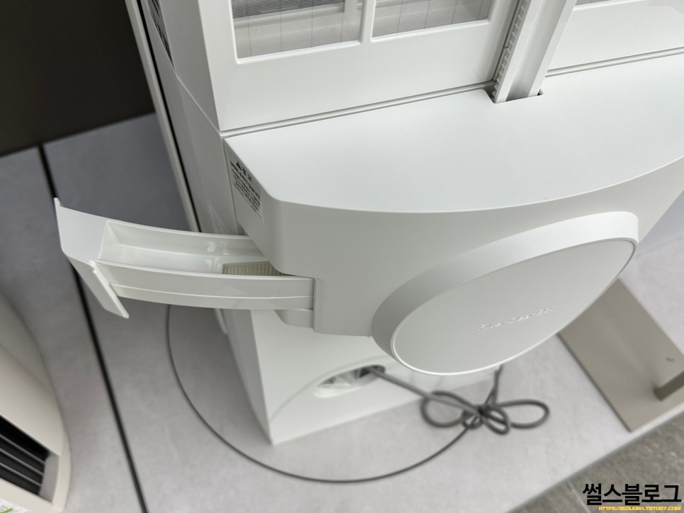 1단계 : 필터클린봇입니다. 제품 뒤쪽에 큰 먼지를 잡아주는 극세필터를 주 56시간에 한번 자동으로 청소해 줍니다. 사실, 에어컨 후면의 극세필터 청소 하기가 여간 번거로운 게 아니지만, 이렇게 큰 먼지를 잡아주는 것만으로도 냉방 효율을 상당히 올릴 수 있습니다. 추가적으로 필터클린봇의 먼지는 옆의 통을 빼서 청소해 주시면 되는데 6개월에 한 번만 청소하시면 됩니다.