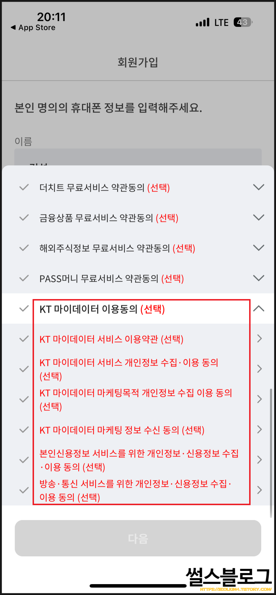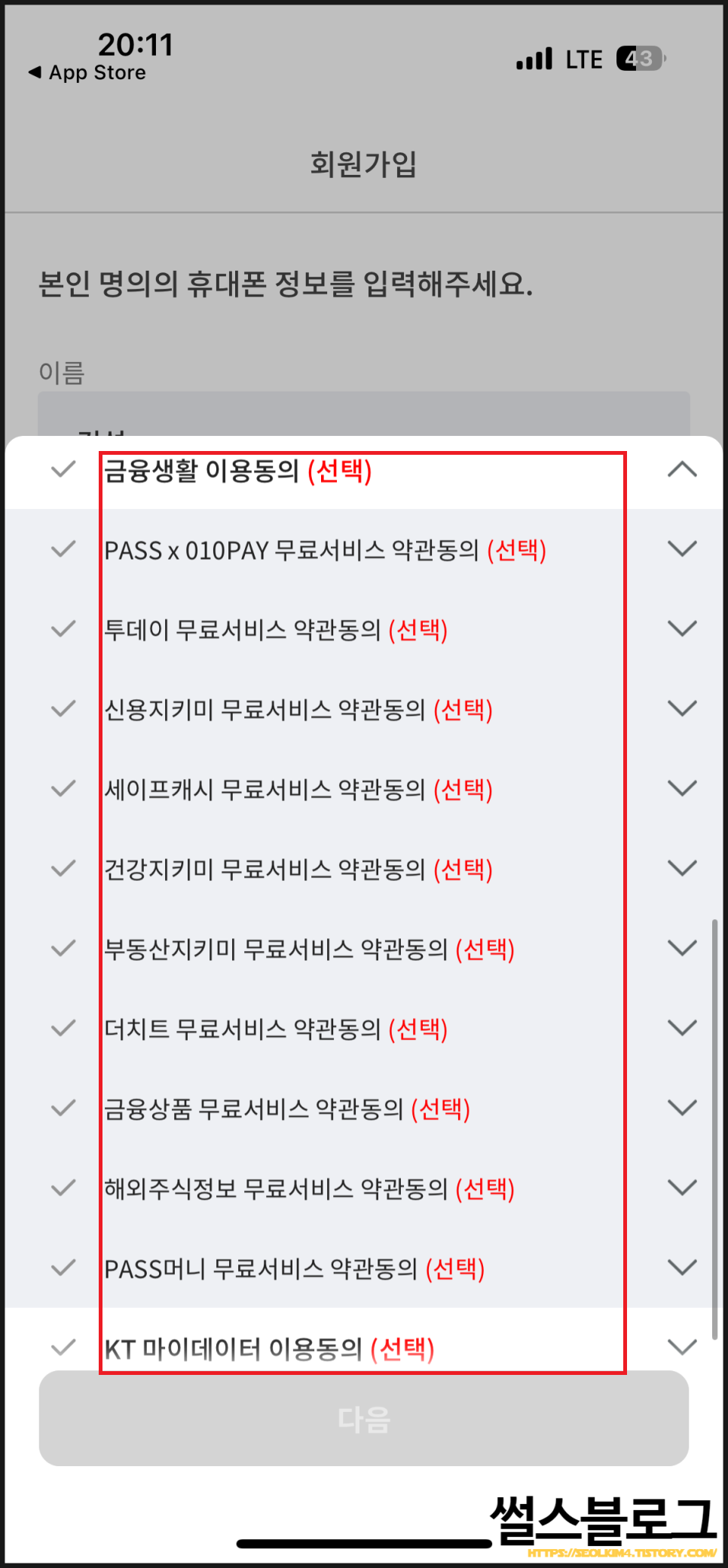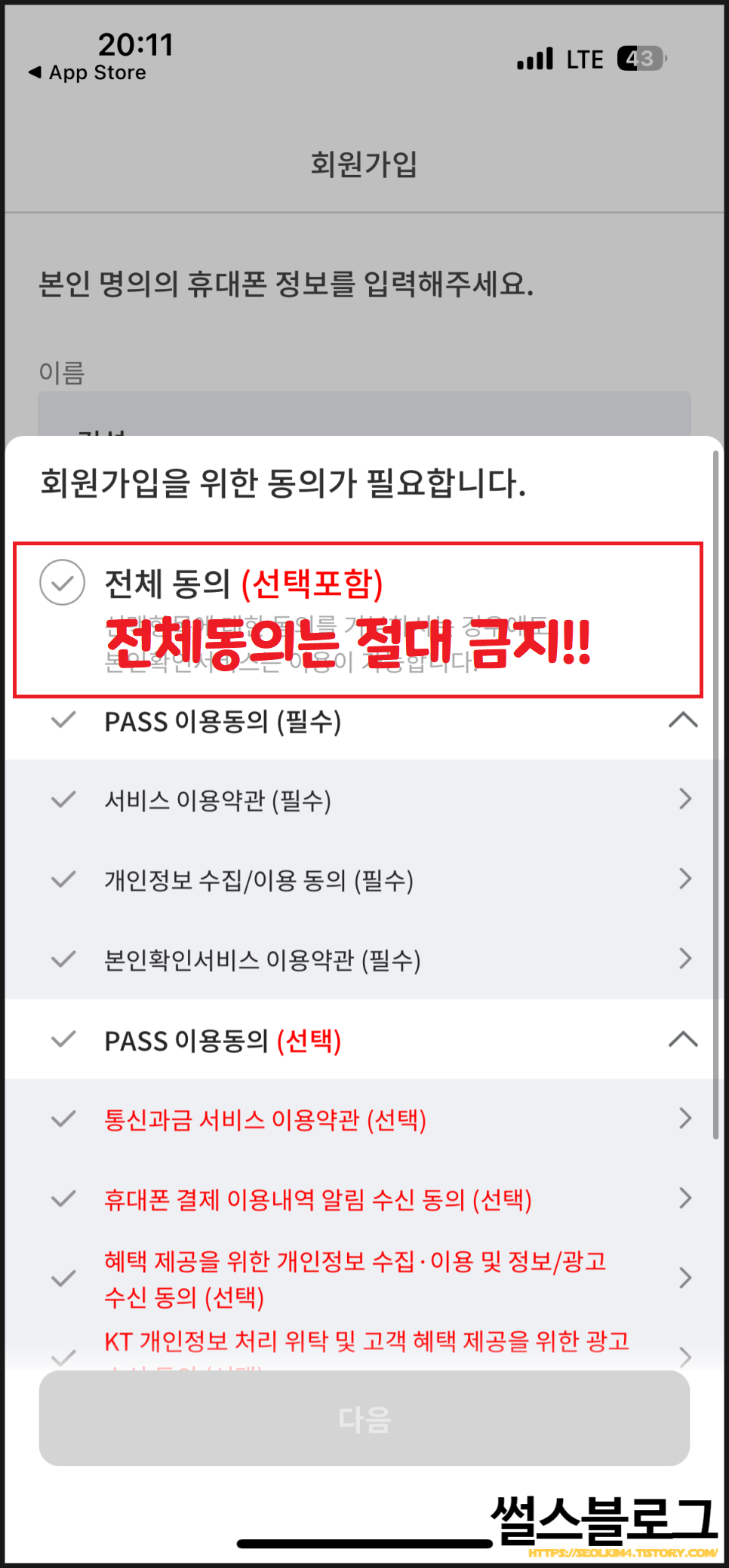 PASS앱이 문제가 되는 부분은 회원가입 부분인데요, 처음에 앱을 설치하고 회원가입에 대한 동의가 있는데 대부분의 사람들은 보통 전체동의를 하고 넘어갑니다. 그렇지만 PASS앱에는 전체동의를 하게 되면 위의 이미지 처럼, 통신사에서 제공하는 20개의 선택 동의도 자연스럽게 동의하게 되며 개인정보가 쉽게 넘어가버립니다. 제가 정말 여러 앱들의 선택 약관을 봐왔지만 이렇게 심각하게 선택 부분이 많은 앱은 처음인 거 같습니다. 그렇다고 무조건 통신사를 욕할게 아니라, 통신사에는 빨간색으로 선택 항목을 알아보기 쉽게 표시했으니 선택을 누른 고객의 잘못도 어느 정도 있다고 봅니다.