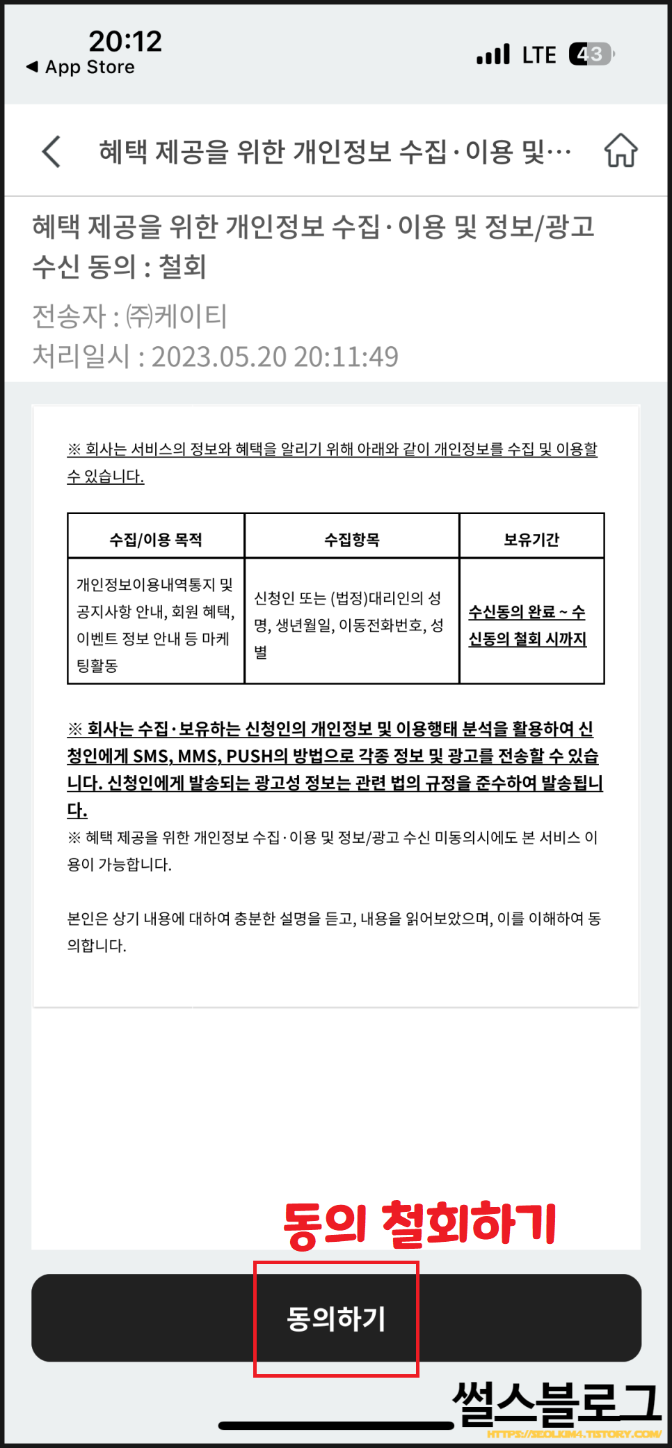 수집/이용 목적 : 개인정보 내역 통지, 공지사항 안내, 혜택, 이벤트, '마케팅 활용'