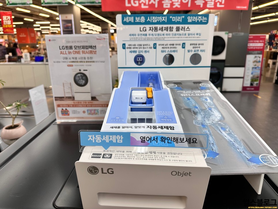 하지만, 자동세제함이 무조건 좋은건 아니겠죠? 관리도 필요합니다. LG전자의 세탁기에 탑재되는 자동세제함은 기본적으로 잔여 세제를 닦아주는 워터스프레이 등 다양한 기능들이 탑재되어 세제가 막히거나, 곰팡이가 발생할 일이 적다고 합니다. 자동세제함이 고장나는 이유는 고농축 세제나, 가루 세제를 사용하기 때문입니다. 추가적으로 인체공학적인 디자인으로 세제 투입시 허리를 숙이지 않아도 되어 허리 건강도 생각했다고 합니다.